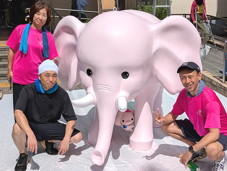 ピンクの象は、いつもの場所に戻す前にペイントをして綺麗にして戻すことができました。