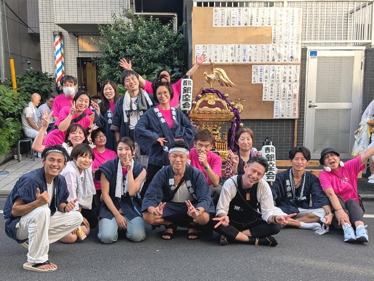 銀座会では、神輿を担ぎ荻窪八幡まで住宅街を巡り西荻駅周辺をねり歩きました。